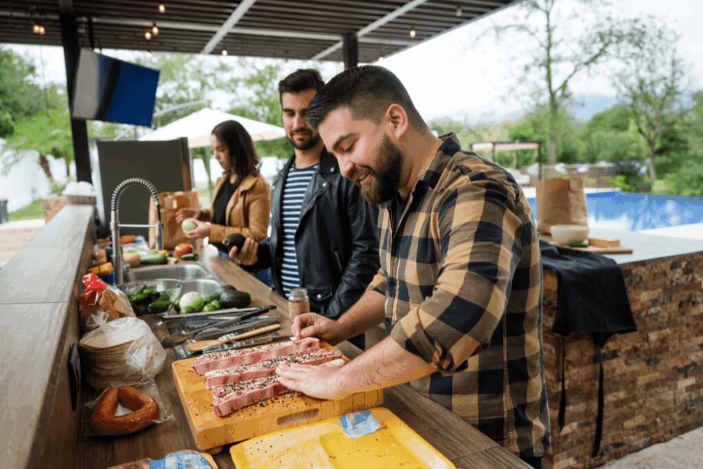 Considering that we’re talking about how to build an outdoor kitchen, you’ll want to choose materials that can withstand the elements and are still easy to clean. Popular materials for outdoor kitchens include stone, brick, concrete, and tile. Depending on the weather in your individual area, you’ll have to decide which materials makes the most sense for you.