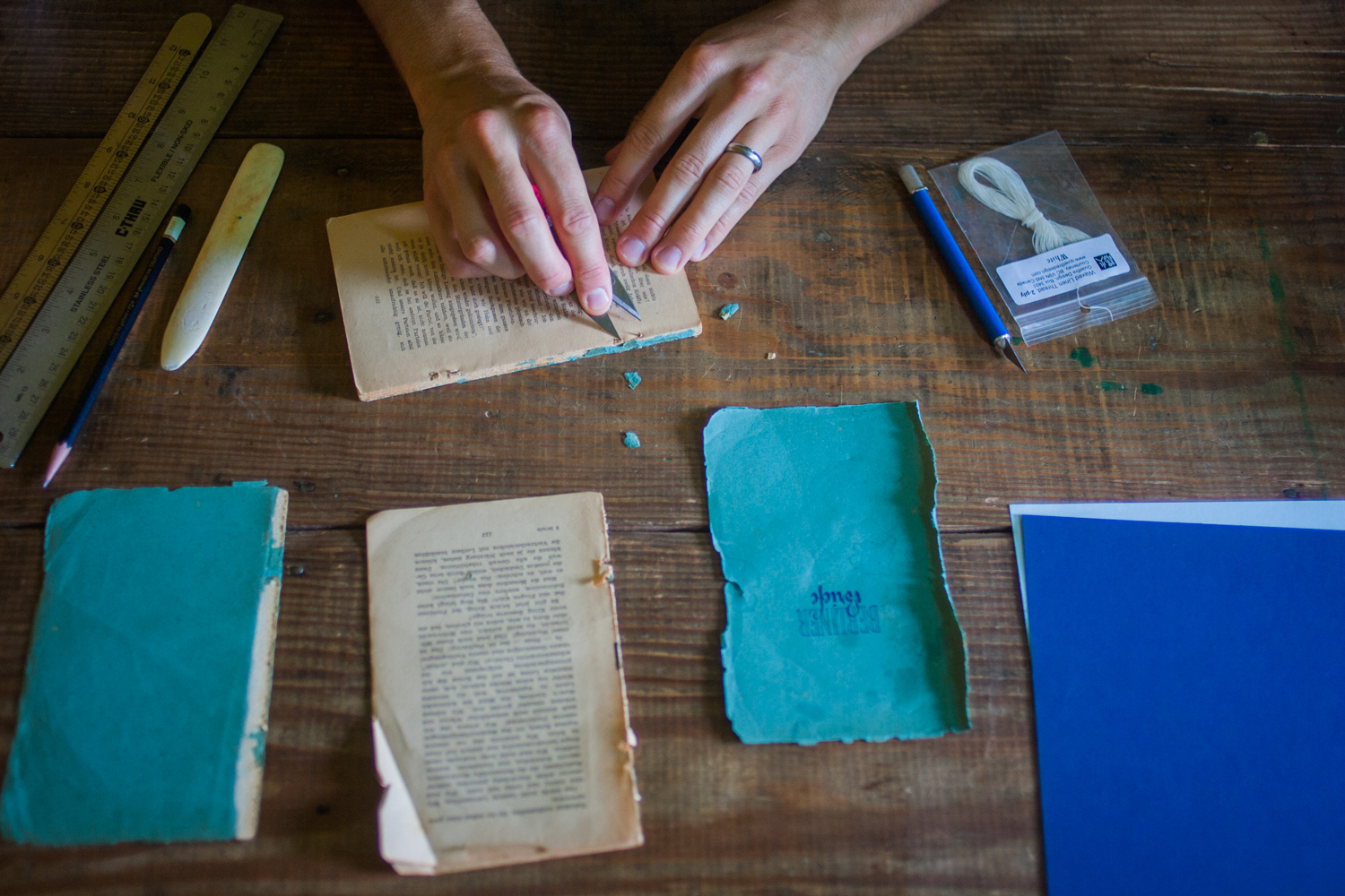 Normally I save all kinds of trimming for the very last step, but I needed the top and bottom edges to be totally straight for stab-style DIY book binding.