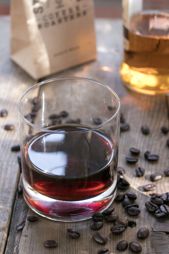 Of course, there are coffee-flavored liqueurs out there. Kahlua is the most famous; it’s based on rum, and tastes nice and sweet. But I like whiskey better than rum, and I want the complexity of a coffee liqueur, but not the inherent sweetness. By making your own, you can control quality of coffee, the amount of sugar, and the whole experience and overall flavor profile is totally a step up.  And, it takes, like, five minutes.