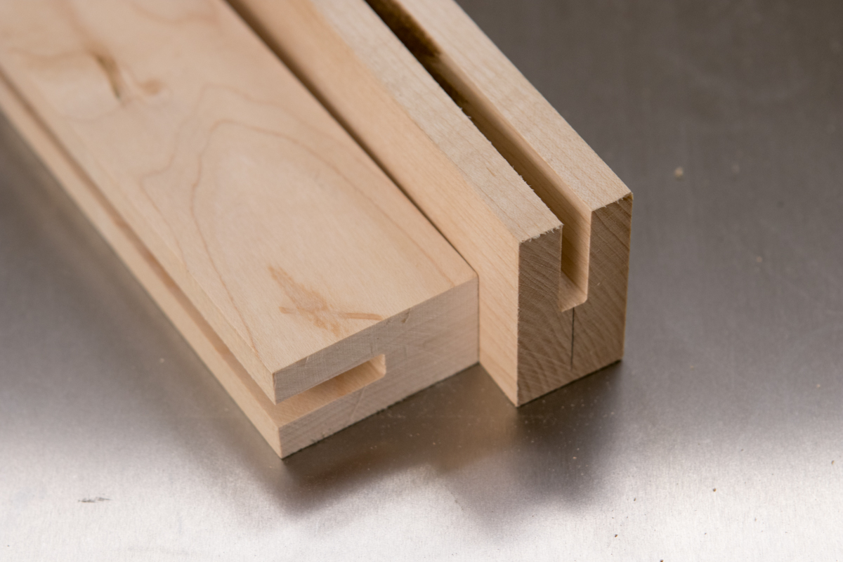 The grooves are oversized just a bit to allow for wood movement. I suspect without a tenon in the groove, the outsides will likely start to close-up a bit with the seasons, so there’s a little wiggle room to make sure I can get the 1/4″ thick aluminum in and out.