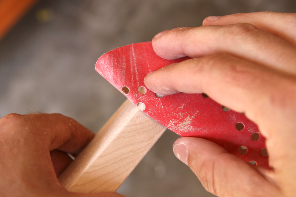 Once you’ve taken your project to 220 with the sander, finish with the same grit by hand using a flat sanding block. Sand with the grain only. If you need some, here’s our quick and easy tutorial for making the ultimate sanding block.