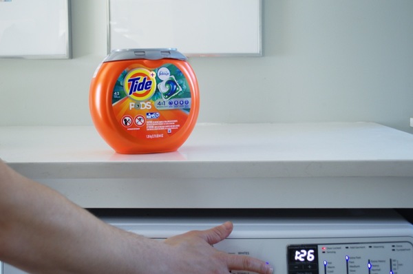 Tide Pods are easy and convenient to use; you just grab one for regular loads or two for extra large/soiled loads, and put it in the washing machine drum before you put the clothes in. They’re super concentrated, resulting in a better clean than bargain brand detergents (which are mostly water). We tried them on a few game day party food-related stains: