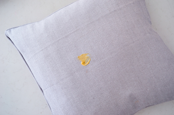 For pillows with removable pillowcases, take the cover off, pre-treat with a stain remover, and launder with a heavy-duty, concentrated detergent like Tide Pods.