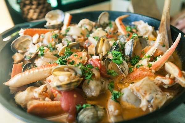 Kicking the meal off is a course of Brown Derby Cocktails followed by some Grilled Corn with Tequila Lime Butter, a main course of Gulf Coast Cioppino, and a Grilled Georgia Peach Crumble for dessert. All of which can be cooked with a combination of a grill and cast-iron skillet. Click here for the full recipes.